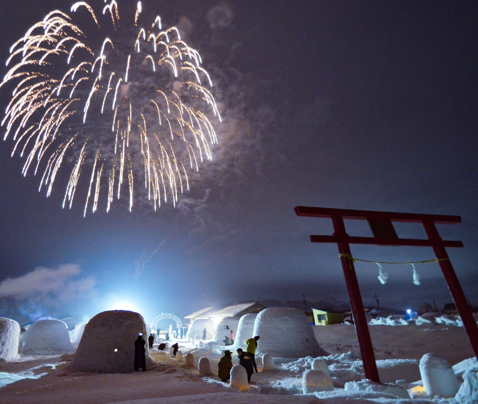 | 冬の澄んだ空気で開く花火と、かまくらに映る光をお楽しみください ※1組につき、花火1発+星打ちが料金に含まれています | ||||||||||||||||||
